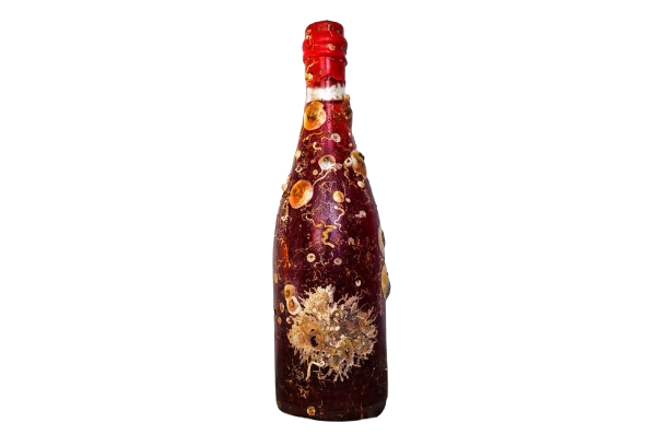 Dopo mesi di immersione, la natura adotta le nostre bottiglie. All'esterno si naturalizzano, ricoprendosi di molluschi e organismi marini che creano texture uniche. Una volta pulite e decontaminate, ogni bottiglia emerge come un'opera d’arte esclusiva e inimitabile: nessuna è uguale all'altra, perché è il mare a firmarle.